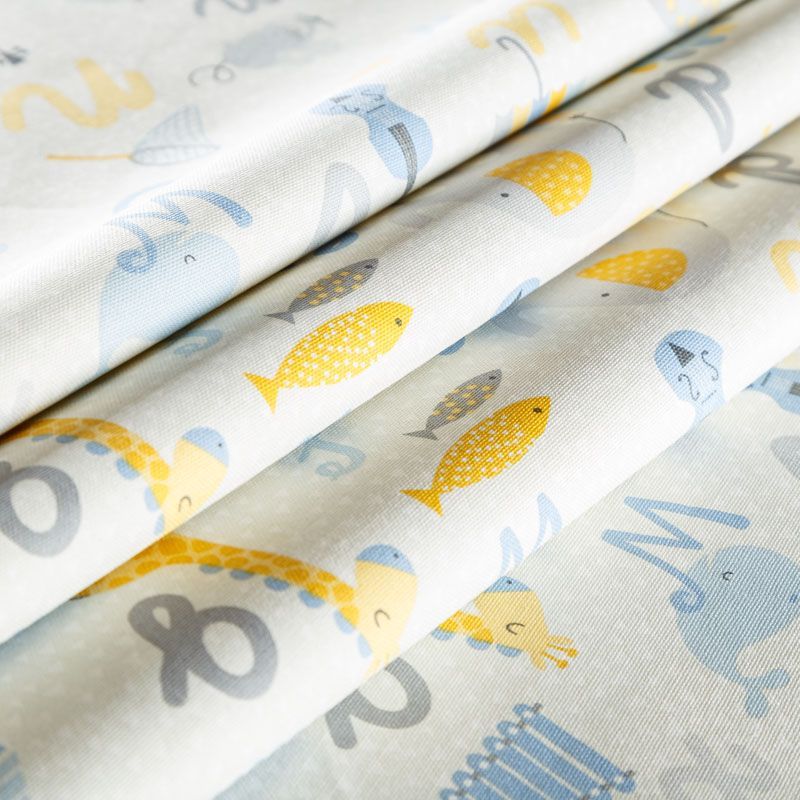 Натуральная хлопковая портьерная ткань с милым ярким принтом в виде милых зверушек, игрушек и латинских букв. Ткань средней плотности, без блеска, хорошо драпируется, имеет полонтяное переплетение. Прекрасно подойдет для оформления детской или дачного интерьера. Можно использовать для пошива портьер, римской шторы, салфеток, столового белья, подушек, покрывал, обивки мебели.