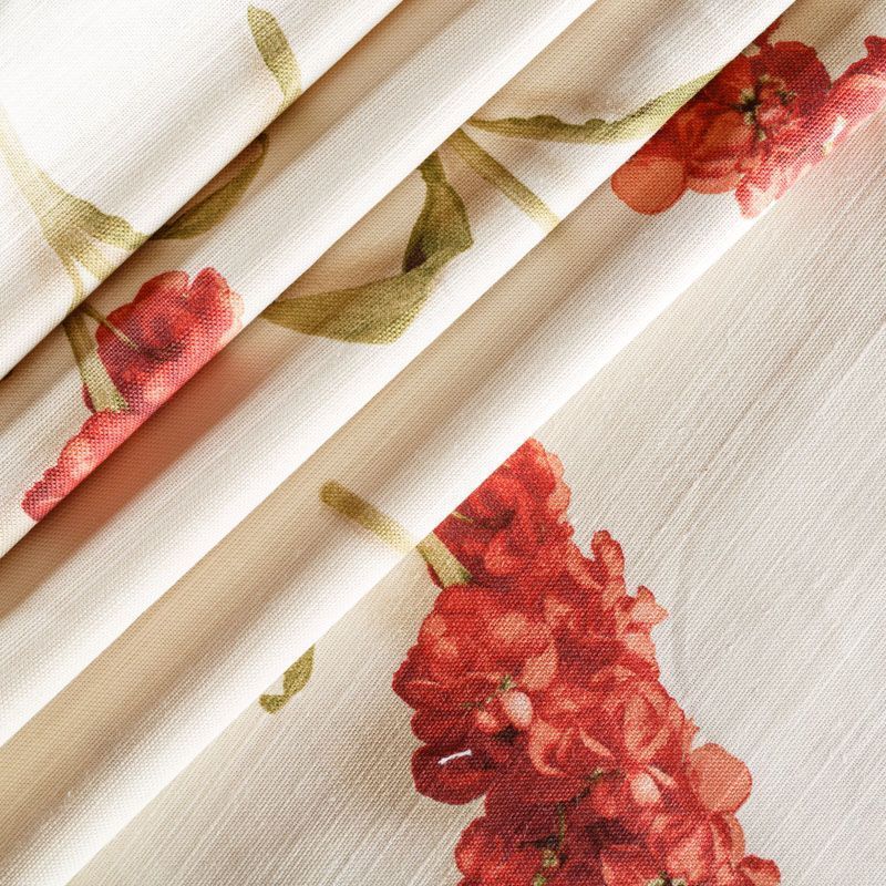 Хлопковая портьерная ткань английского производителя. На молочной текстурированной основе наснесен принт в виде ярких первоцветов. Ткань средней плотности, прекрасно держит форму, драпируется в устойчивые складки. Подойдет для классических портьер, римских штор, покрывал, подушек, скатертей, салфеток и других элементов текстильного интерьера как в самостоятельном исполнении, так и качестве компаньона к однотонным варинтам.