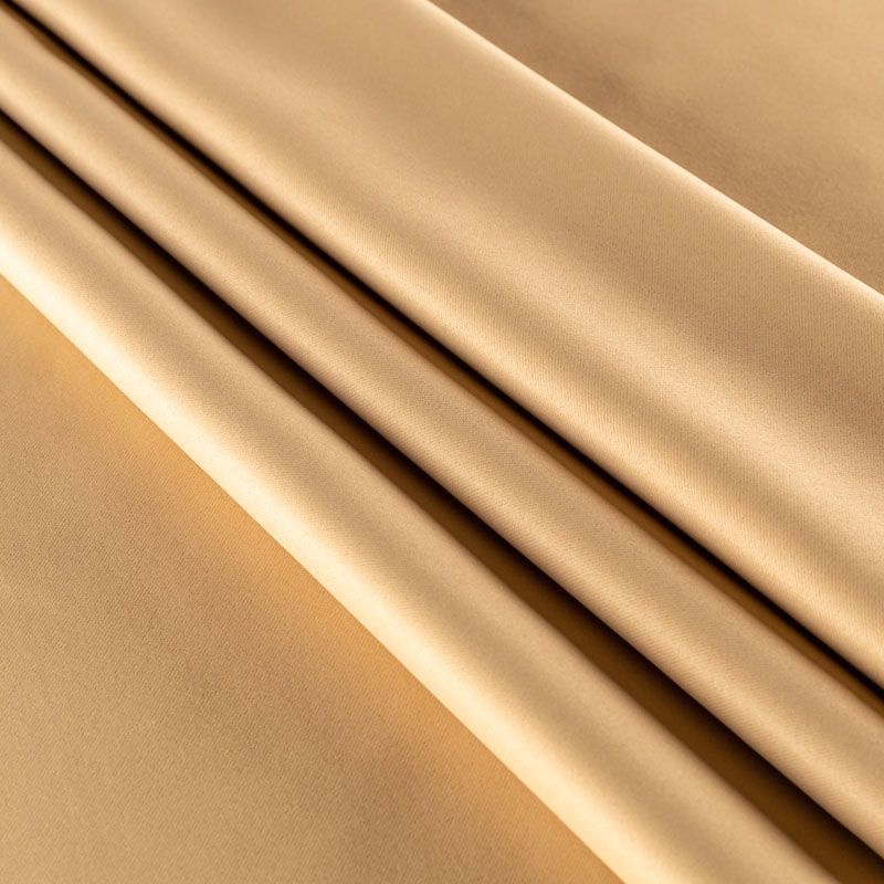 Двухстороняя плотная ткань. Обе стороны гладкие, имеют сатиновый легкий глянец. Ткань хорошо драпируется, укладываясь в крупные ниспадающие пластичные складки и позволяет использовать любые виды крепления для штор – люверсы, ленту, кольца.  Блокирует от 30 до 70 % проникновение света в помещении, не склонна к выгоранию и деформации. Удачно впишется в такие интерьеры, как эко, лофт, модерн в качестве портьер и других элементов текстильного оформления.