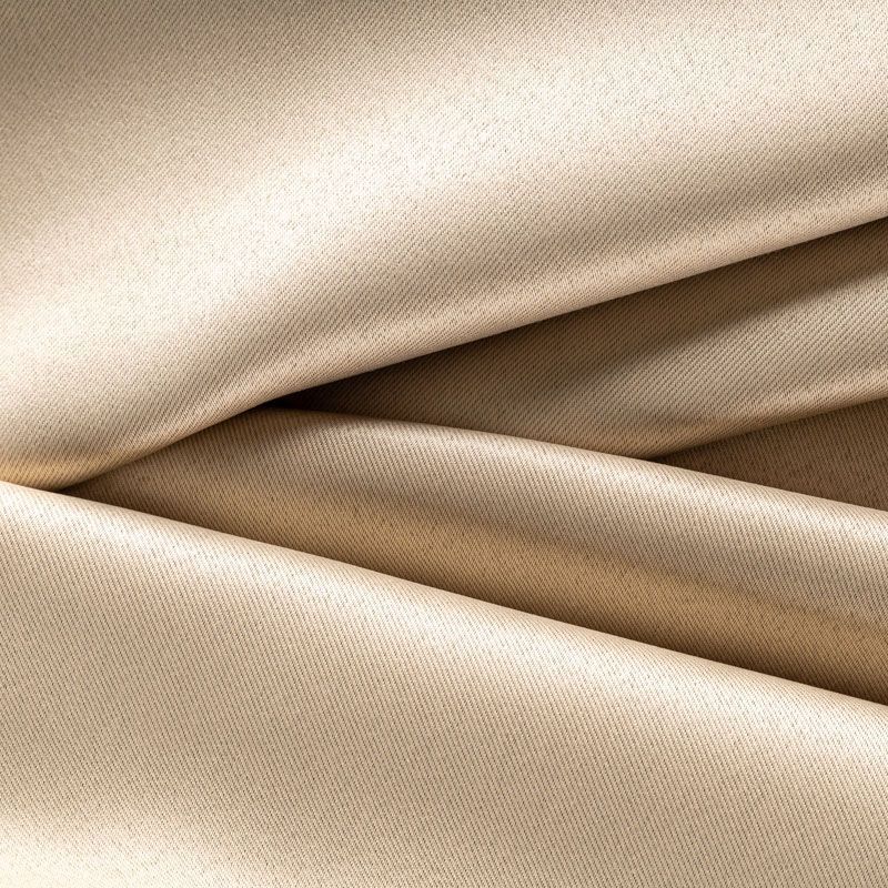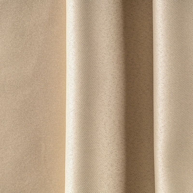 Двухстороняя плотная ткань. Обе стороны гладкие, имеют сатиновый легкий глянец. Ткань хорошо драпируется, укладываясь в крупные ниспадающие пластичные складки и позволяет использовать любые виды крепления для штор – люверсы, ленту, кольца.  Блокирует от 50 до 90 % проникновение света в помещении, не склонна к выгоранию и деформации. Удачно впишется в такие интерьеры, как эко, лофт, модерн в качестве портьер и других элементов текстильного оформления.