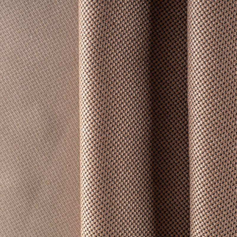 Двухстороняя плотная ткань.Одна сторона - матовая с плетением рогожка,а другая с сатиновым легким глянцем. Хорошо драпируется, укладываясь в крупные ниспадающие пластичные складки и позволяет использовать любые виды крепления для штор – люверсы, ленту, кольца.  Блокирует до 50 % проникновение света в помещении, не склонна к выгоранию и деформации. Удачно впишется в такие интерьеры, как эко, лофт, модерн в качестве портьер и других элементов текстильного оформления.