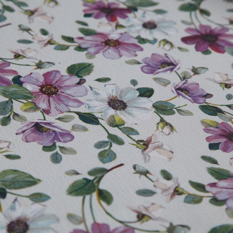 Декоративный смесовый хлопок с флористическим трендовым принтом от испанского производителя Visatex. Ткань средней плотности, приятная на ощупь, слегка фактурная из-за натуральных волокон. Интересный вариант для пошива штор, декоративных подушек и покрывал, изготовления текстильных элементов в кухнях-столовых, гостинных, спальнях и даже детских.