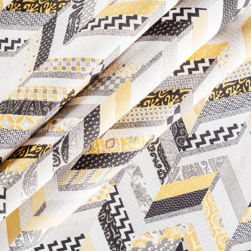 Декоративный смесовый хлопок с геометрическим орнаментом от испанского производителя Visatex. Ткань средней плотности, приятная и гладкая на ощупь. Интересный вариант для пошива штор, декоративных подушек и покрывал, изготовления текстильных элементов в кухнях-столовых, гостинных, спальнях и даже детских.