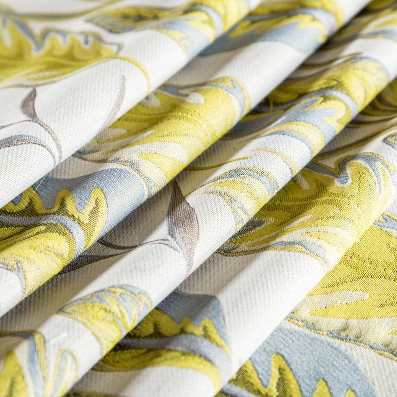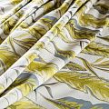 Акцентная жаккардовая ткань с потрясающим растительно-анималистическим дизайном в желтых цветах из коллекции Бродсфорт известного бренда Fryett's. Ткань средней плотности, имеет фактурную, матовую поверхность, прекрасно держит форму. Ткани этой коллекции прекрасно впишутся в традиционный и современный интерьер в качестве римской или классической шторы, подушек, обивки мебели.