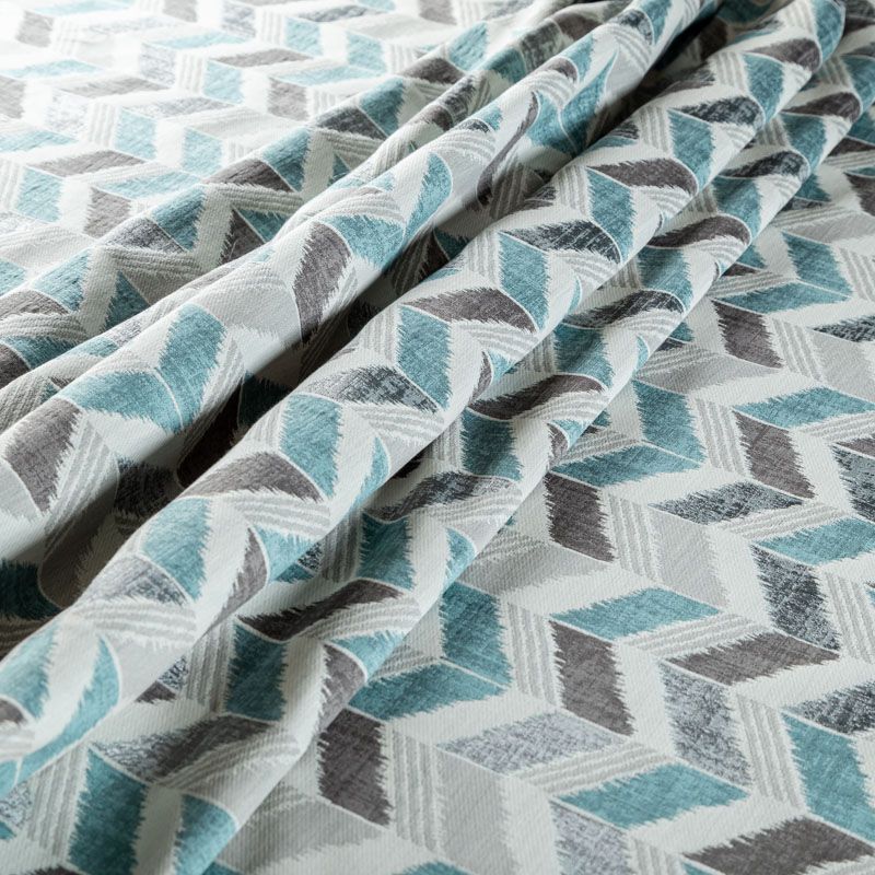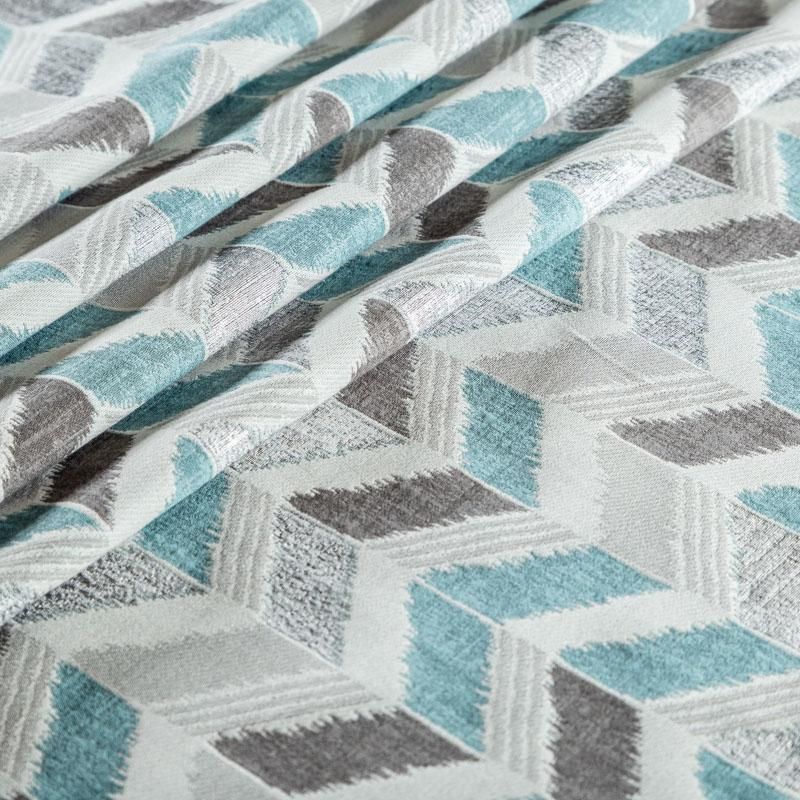 Стильная жаккардовая ткань серо-голубого оттенка с геометрическим узором "зиг-заг" из коллекции Зена известного бренда Fryett's. Ткань высокой плотности, имеет матовую фактурную поверхность, прекрасно держит форму. Ткани этой коллекции прекрасно впишутся в традиционный и современный интерьер в качестве римской или классической шторы, подушек, обивки мебели.