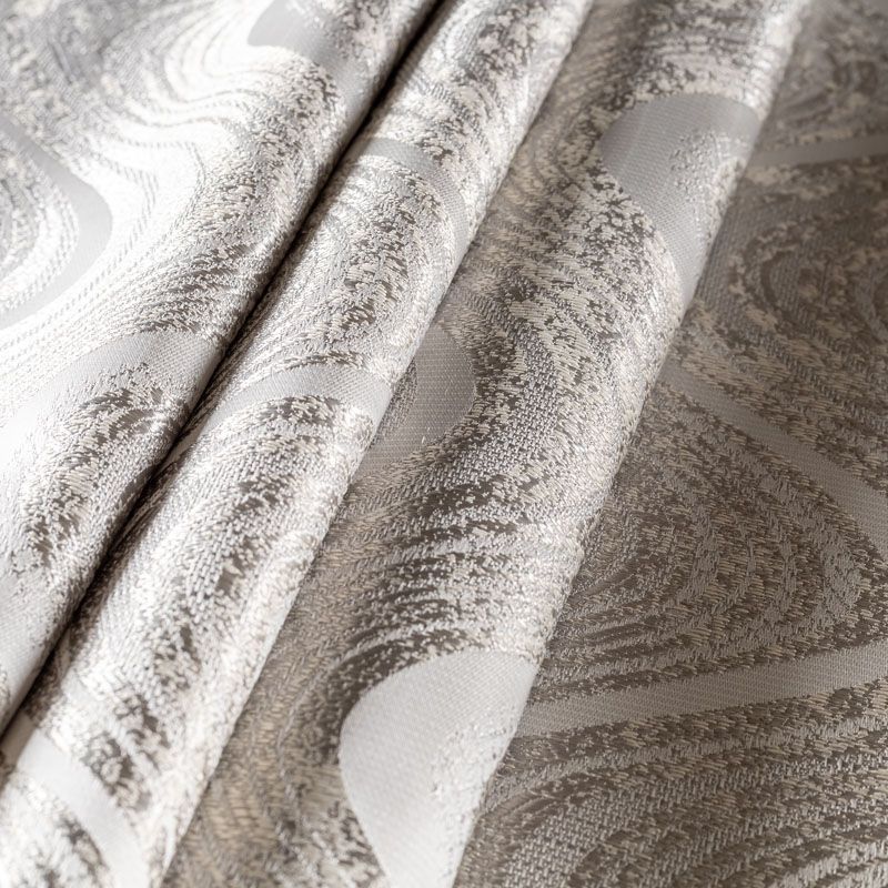 Интересная жаккардовая ткань с абстрактным рисунком в виде горизонтальных "волн" прекрасно подойдет для стильного современного интерьера. Ткань средней плотности, мягкая, хорошо драпируетсяи держит форму. Подойдет в качестве штор для гостиной, спальни, также можно использовать для пошива покрывала, декоративных чехлов, подушек, римской шторы.