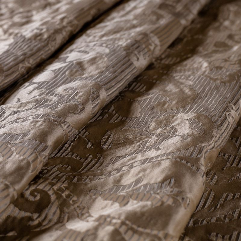 Портьерная жаккардовая ткань с классическим рисунком. Эффект старения, благородные тона и изящная блестящая полоска выглядит сдержанно и изысканно. Идеально подходит к винтажным интерьерам, классическому кабинету, шикарной гостиной в виде портьер, а также используется для декоративных элементов.
