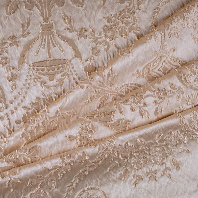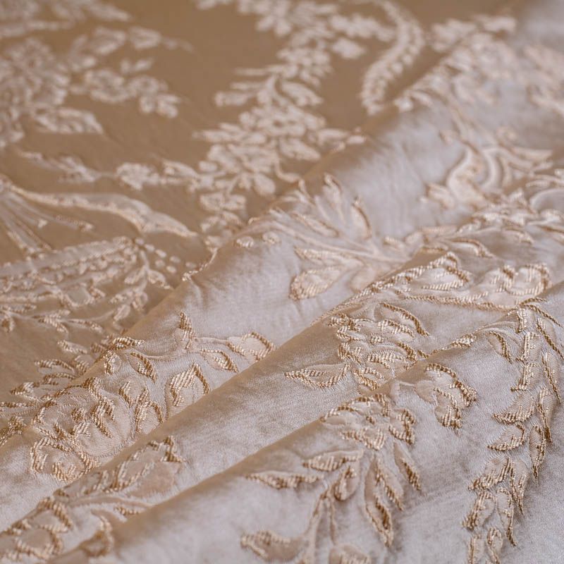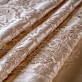 Элегантная коллекция шелковых жаккардов с цветочным рисунком выполненна в однотонном сдержанном варианте. Но различные ткацкие переплетения, использованные при создании ткани, создают объемность рисунка,  эффект роскоши придает благородный блеск полотна. Элементы мебели или декора, шторы и ламбрекены, выполненные с использованием этой ткани, создадут атмосферу наполняющую душу покоем и гармонией.