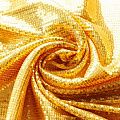 Блестящие пайетки в золотом цвете. Мелкие, размером около 2 мм. Основа - "холодное" тонкое трикотажное полотно, комфортное в носке. Ткань не прозрачная, тянется. Подойдет для вечернего, коктельного платья или юбки, комбинезона, топа, танцевальных и сценических костюмов.