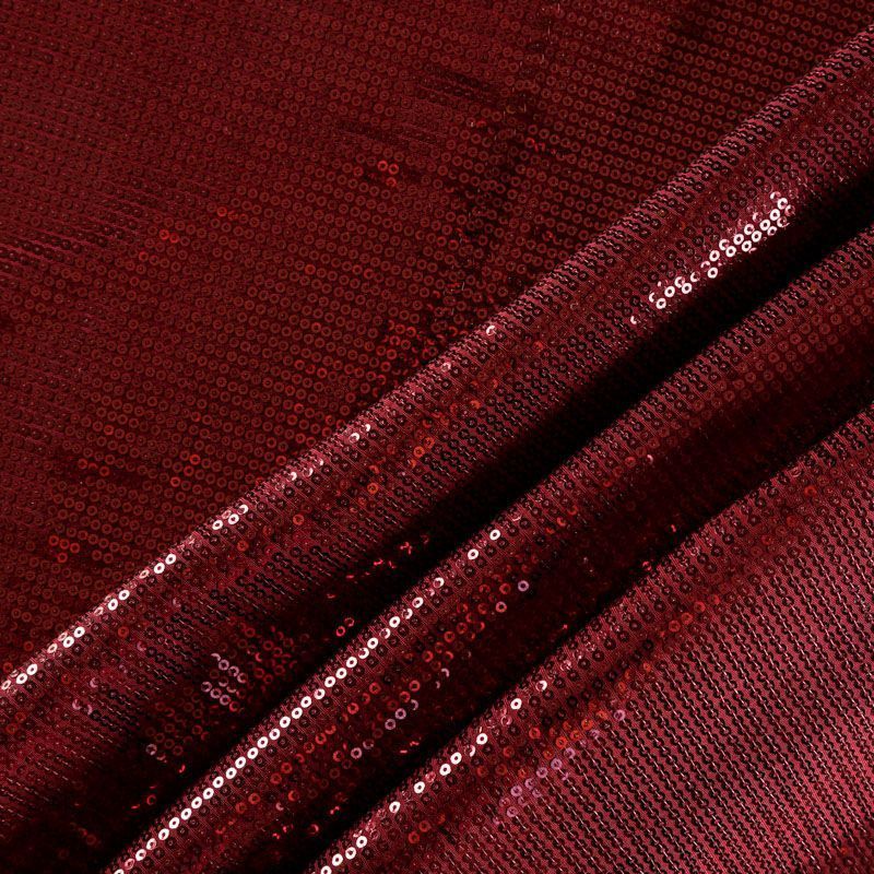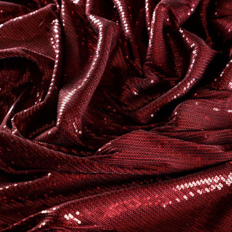 Блестящие пайетки насыщенного вишневого оттенка. Мелкие, размером около 3 мм. Основа - трикотажное полотно, комфортное в носке. Ткань не прозрачная, тянется.  Подойдет для вечернего коктельного платья или юбки, комбинезона, топа, танцевальных и сценических костюмов.