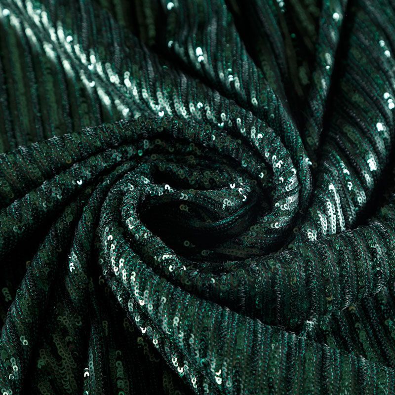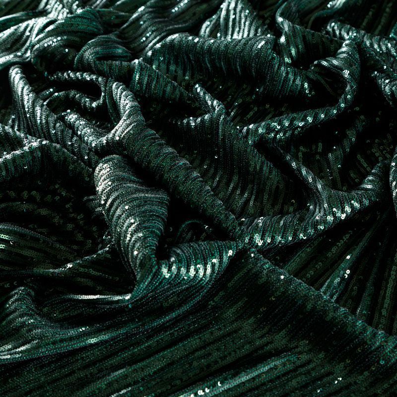 Ткань с пайетками 055-04128 темно-зеленый однотонный