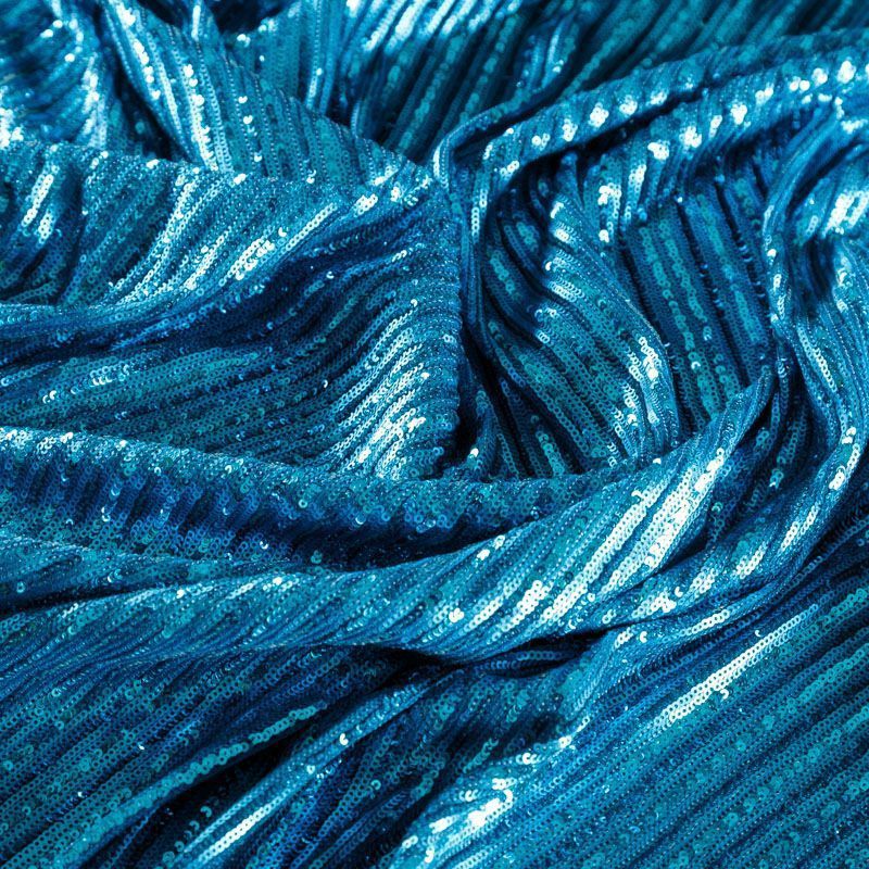 Пайетки на плотной сетчатой основе в тонкую чередующуюся полоску глянцевых и матовых блесток. Полоска расположена поперек полотна. Ткань хорошо драпируется, красиво переливается, имеет глянцевый блеск. Немного тянется, благодаря чему изделия получаются комфортными и отлично сидят по фигуре. Пайетки — идеальный материал для праздников и вечеринок. Из них получится эффектное платье, туника, юбка или комбинезон.