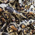 Пайетки в виде золотой шкуры леопарда с блестками. Вышиты на черной эластичной сетке. Роскошно смотрится в блестящих нарядных комбинезонах, сверкающих платьях и искрящихся блузках, юбках, туниках, концертных костюмах, нарядах для танцев.  На ощупь полотно не тяжелое, достаточно пластичное и удобное в носке.