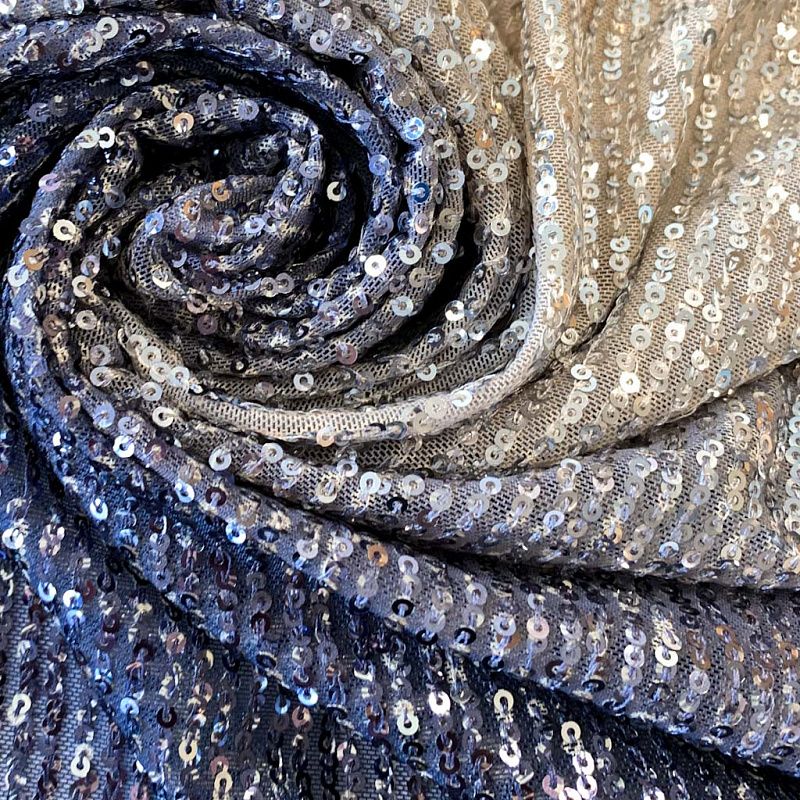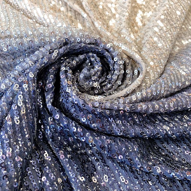 Невероятные пайетки на тонкой сетке с роскошным мерцанием мелких блесток с переходом цвета. Ткань очень хорошо драпируется, красиво переливается, имеет глянцевый блеск, пластичная и эластичная и в длину, и в ширину. Градиент расположен в направлении от кромки к кромке. Набирается объемом. Это может быть нарядное платье, Пайетки — идеальный материал для праздников и вечеринок. Из них получится эффектное платье, жакет, боди, туника, юбка или комбинезон.