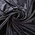 Тонкий хлопковый трикотаж черного цвета с легким блеском на поверхности, который особенно эффектно смотрится в драпировке. Материал не просвечивает, приятный к телу и комфортный в носке. Подойдет для пошива топов, футболки, бадлонов, лонгслива, кардигана, спортивного платья.