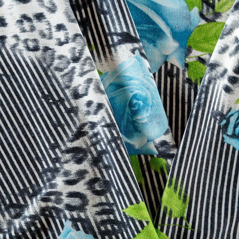 Трикотаж средней плотности, хорошо тянется за счет эластана в составе. Сочетание нескольких принтов образуют сложный цветочно-геометрический рисунок. Ткань не сухая, мягкая, не просвечивает, теплая, хорошо драпируется. Отлично подойдет для пошива платья, кардигана, свитшоша, лонгслива, мягкого жакета, юбки.
