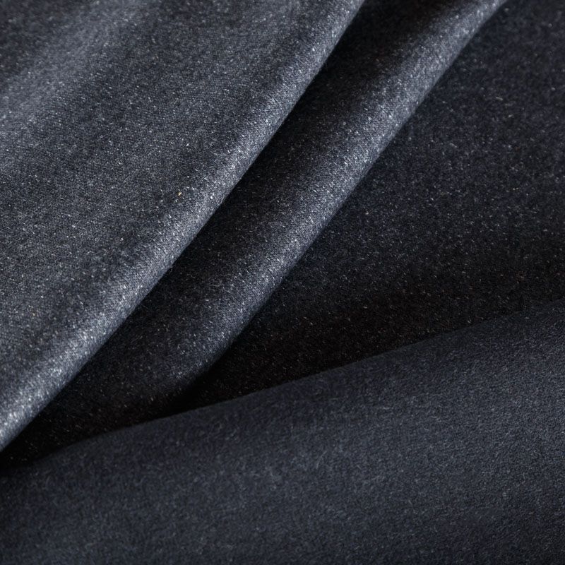 Плотное итальянское шерстяное трикотажное полотно с вязаной фактурой графитового оттенка с вкраплениями белого. Ткань прочная и практичная в носке, отлично держит форму, упругая, тянется в поперечном направлении. Подойдет для прямых силуэтов изделий, а также объемных в стиле оверсайз, для пошива теплого жакета, пальто на подкладе, пончо, кардигана, жилета, теплого бомбера, юбки, платья.