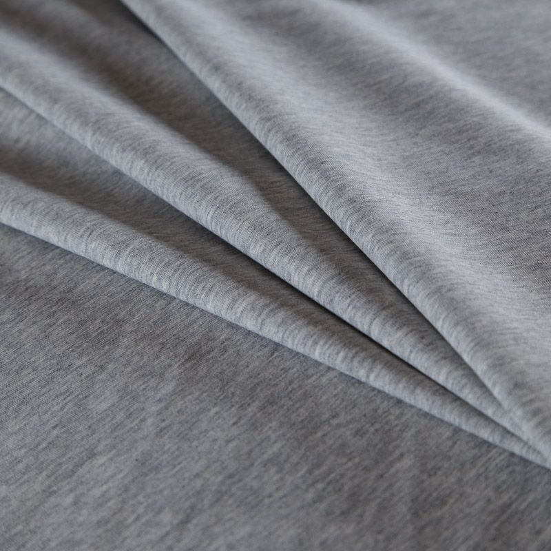 Трикотажное полотно средней плотности с хорошим смесовым составом. Материал очень мягкий, пластичный, тянется за счет эластана в составе. Поверхность гладкая, матовая, не просвечивает. Отлично подойдет для пошива изделий свободных и прилегающих силуэтов: платьев, лонгсливов, футболок, спортивной одежды. Трикотаж почти не мнется, очень прочный на разрыв.