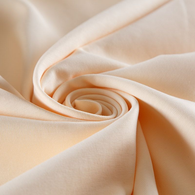 Трикотажное полотно средней плотности с хорошим смесовым составом. Материал очень мягкий, пластичный, тянется за счет эластана в составе. Поверхность гладкая, матовая, не просвечивает. Отлично подойдет для пошива изделий свободных и прилегающих силуэтов: платьев, лонгсливов, футболок, спортивной одежды. Трикотаж почти не мнется, очень прочный на разрыв.