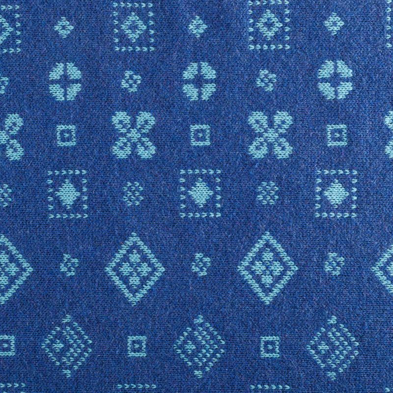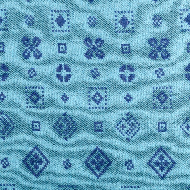 Итальянский теплый мягкий вязаный шерстяной трикотаж, два слоя которого соединены между собой жаккардовым геометрическим узором. Полотно очень пластичное, приятное на ощупь, не колется. При соответствующей обработке швов одежду из этого трикотажа можно носить на обе стороны. Подойдет для пошива теплых уютных свитеров, кардиганов, пальто, костюмов, теплого платья, свитшота, джемпера.