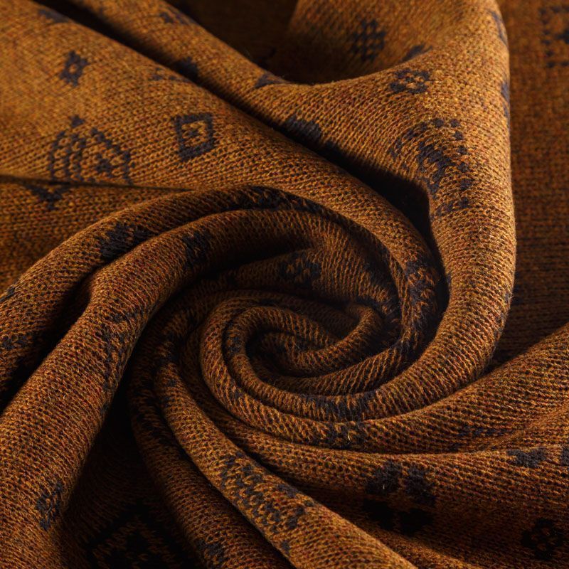 Итальянский теплый мягкий вязаный шерстяной трикотаж, два слоя которого соединены между собой жаккардовым геометрическим узором. Полотно очень пластичное, приятное на ощупь, не колется. При соответствующей обработке швов одежду из этого трикотажа можно носить на обе стороны. Подойдет для пошива теплых уютных свитеров, кардиганов, пальто, костюмов, теплого платья, свитшота, джемпера.