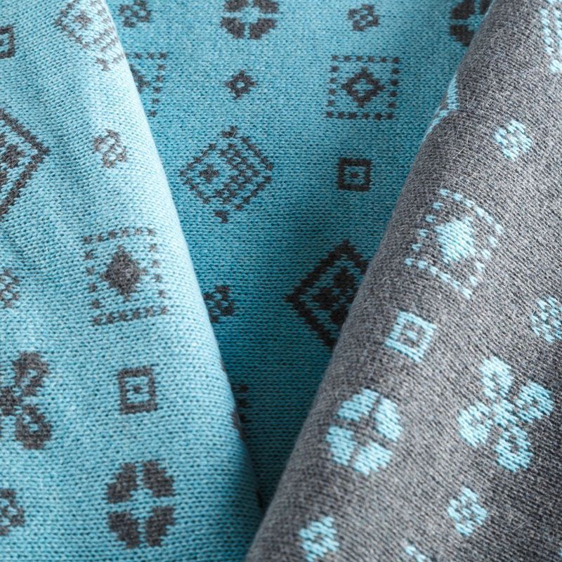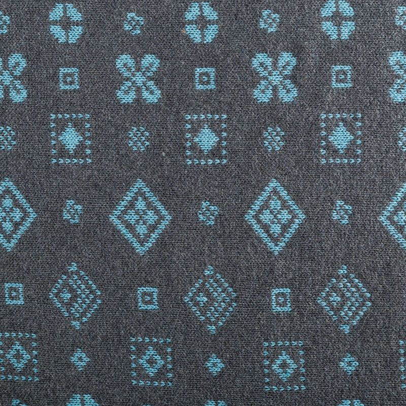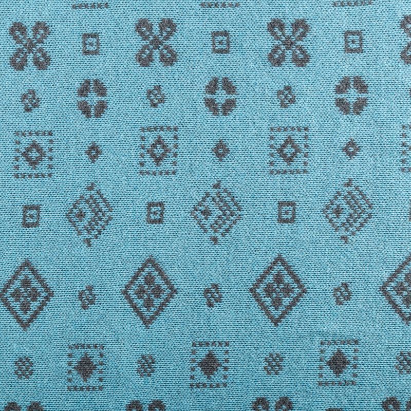 Итальянский теплый мягкий вязаный шерстяной трикотаж, два слоя которого соединены между собой жаккардовым геометрическим узором. Полотно очень пластичное, приятное на ощупь, не колется. При соответствующей обработке швов одежду из этого трикотажа можно носить на обе стороны. Подойдет для пошива теплых уютных свитеров, кардиганов, пальто, костюмов, теплого платья, свитшота, джемпера.