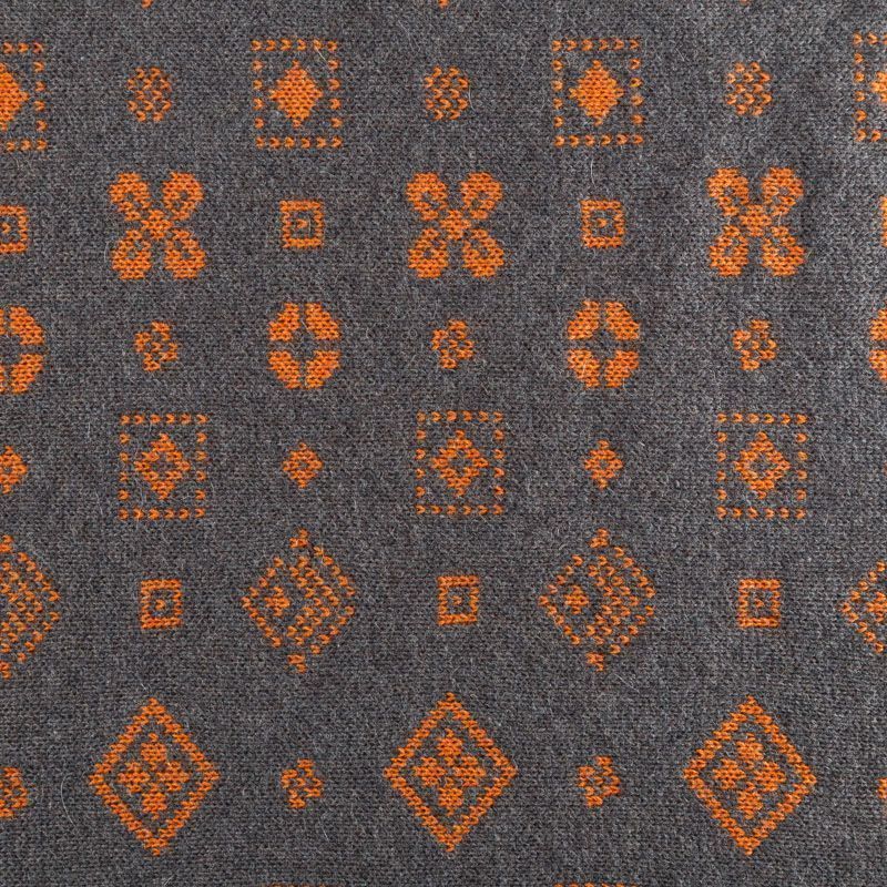 Итальянский теплый мягкий вязаный шерстяной трикотаж, два слоя которого соединены между собой жаккардовым геометрическим узором. Полотно очень пластичное, приятное на ощупь, не колется. При соответствующей обработке швов одежду из этого трикотажа можно носить на обе стороны. Подойдет для пошива теплых уютных свитеров, кардиганов, пальто, костюмов, теплого платья, свитшота, джемпера.