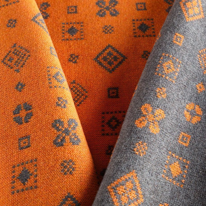 Трикотаж 2-х сторонний вязаный 056-05819 серо-оранжевый в Казани