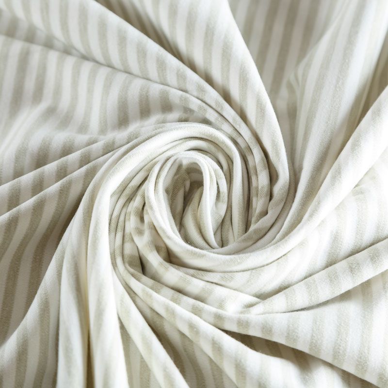 Хлопковый трикотаж качества пенье в полоску. Поверхность ткани гладкая, полотно средней плотности, не толстое, мягкое и нежное на ощупь. Прерасно подойдет для пошива детской одежды, постельного белья и комплектов в кроватку, пижамы, домашней и летней одежды.