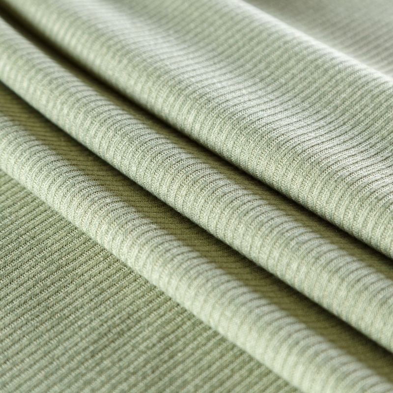 Трикотаж-лапша средней плотности, с высокой степенью эластичности, поверхность рельефная за счет эффекта резинки. С изнанки трикотаж гладкий, комфортный, подходит для использования без подклада. Сшить из такого полотна можно топы, лонгсливы, водолазки, платья,  юбки, брючные комплекты. Направление полос - вдоль линии кромки.