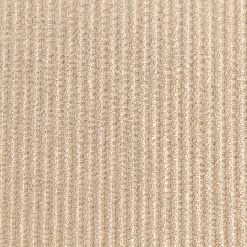 Трикотаж-лапша средней плотности, с высокой степенью эластичности, поверхность рельефная за счет эффекта резинки и мерцающая за счет металлизированного напыления. С изнанки трикотаж гладкий, комфортный, подходит для использования без подклада. Сшить из такого полотна можно водолазки, платья, топы, юбки, комплекты, нарядные изделия. Направление полос - вдоль линии кромки.