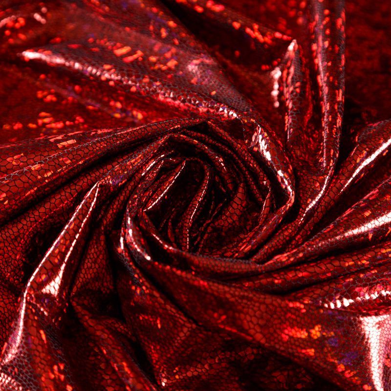 Эффектное трикотажное полотно с напыленными разноцветными блестками. Поверхность фактурная с рисунком под рептилию, который не деформируется при растяжении трикотажа. Материал очень пластичный, образует струящиеся мягкие складки, отлично тянется, не просвечивает, не мнется. Изнаночная сторона матовая, приятная на ощупь. Идеальный выбор для нарядных моделей, гимнастических и танцевальных костюмов.