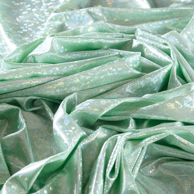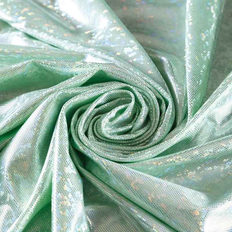 Эффектное трикотажное полотно с напыленными разноцветными блестками. Материал очень пластичный, образует струящиеся мягкие складки, отлично тянется, не просвечивает, не мнется. Изнаночная сторона матовая, приятная на ощупь. Идеальный выбор для нарядных моделей, гимнастических и танцевальных костюмов.