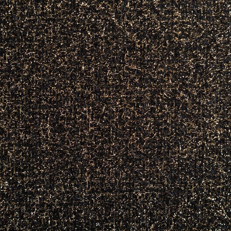 Нарядный трикотаж черного цвета с золотистым люрексом. Полотно мягкое, пластичное, хорошо драпируется, не колется и не просвечивает. Подойдет для пошива логслива, топа, туники, платья, кардигана, юбки.