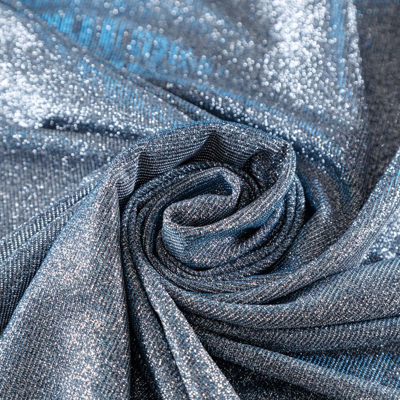 Трикотаж с люрексом 056-06049 серебристо-синий однотонный