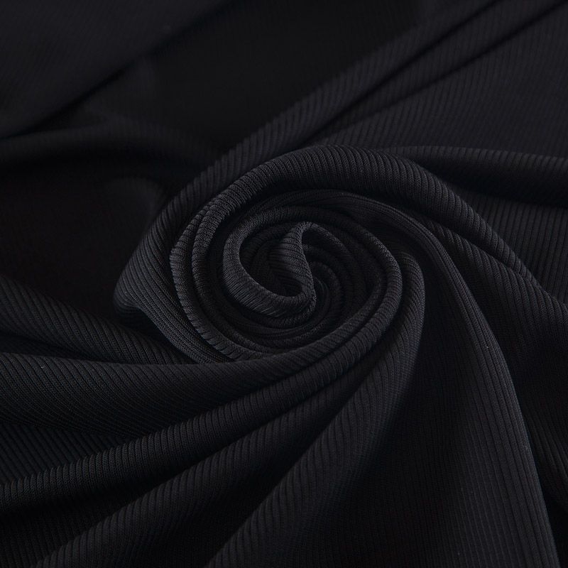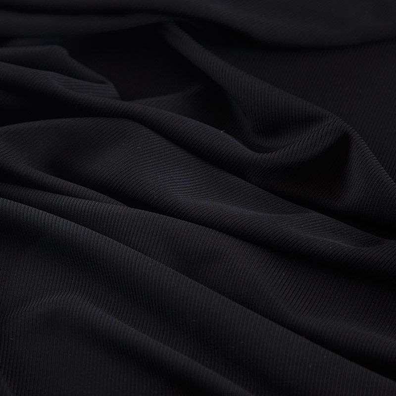 Трикотаж в рубчик 056-17185 черный однотонный