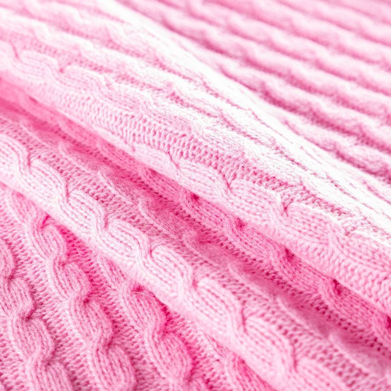 Итальянский шерстяной трикотаж розового оттенка с ажурными вязаными "косами". Полотно плотное, мягкое, эластичное, не просвечивает. Прекрасно подойдет для пошива теплых и уютных свитеров, кардиганов, жилета, платьев, шарфов, палантинов, пончо или снудов.