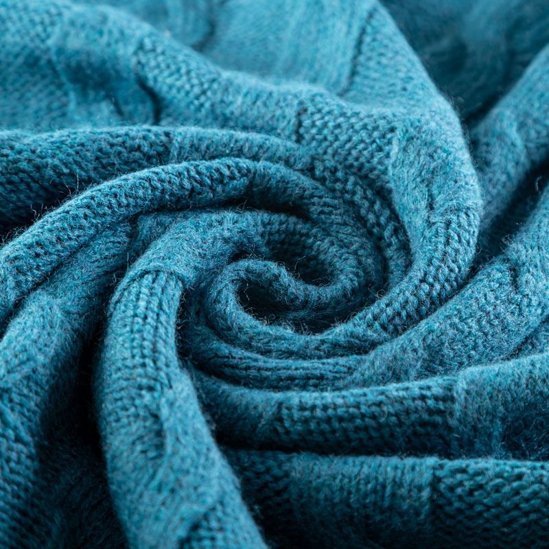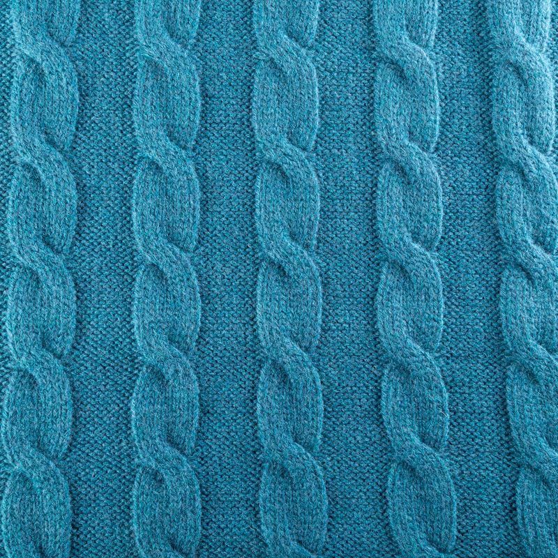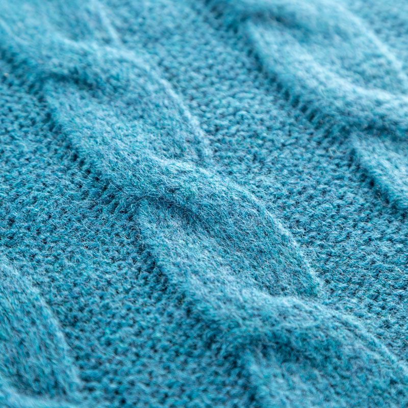 Итальянский шерстяной трикотаж насыщенного сине-зеленого оттенка с крупными ажурными вязаными "косами". Полотно плотное, мягкое, эластичное, не просвечивает. Прекрасно подойдет для пошива теплых, объемных уютных свитеров, кардиганов, жилета, платьев, шарфов, палантинов, пончо или снудов.