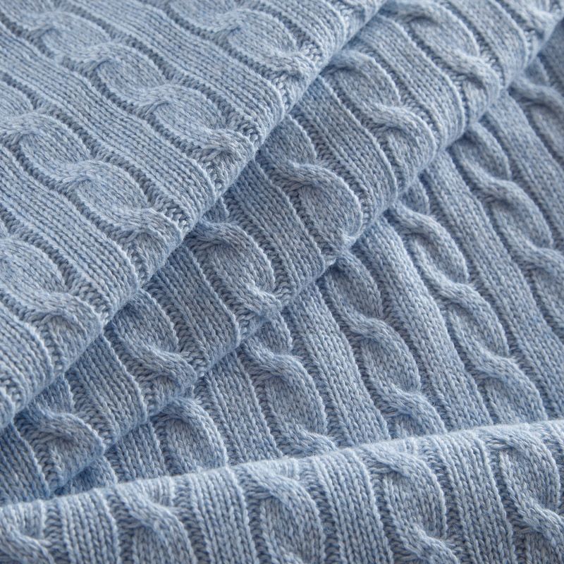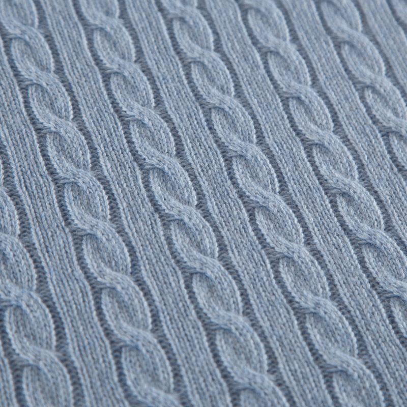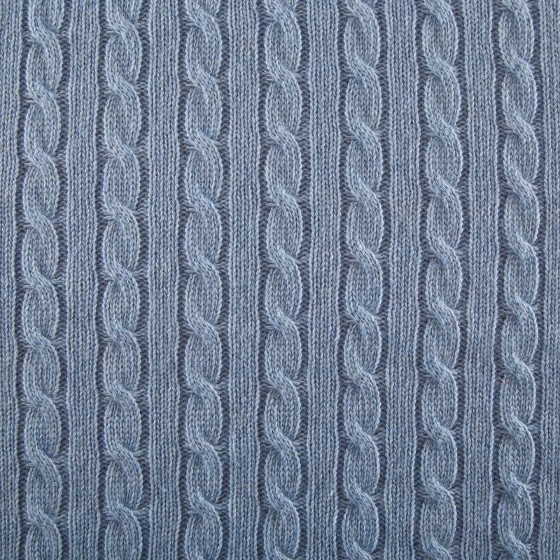 Итальянский вязаный шерстяной трикотаж с косами в нежном голубом оттенке. Трикотаж мягкий, матовый, пластичный. Отлично подойдет для пошива платья, кардигана, свитера.