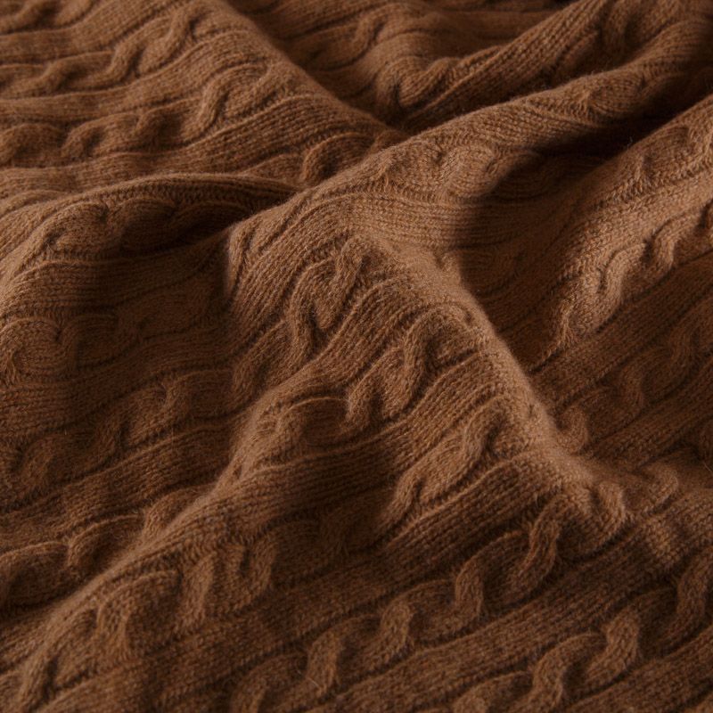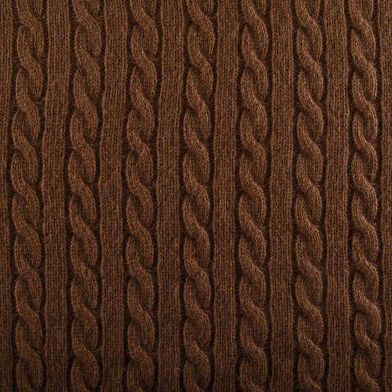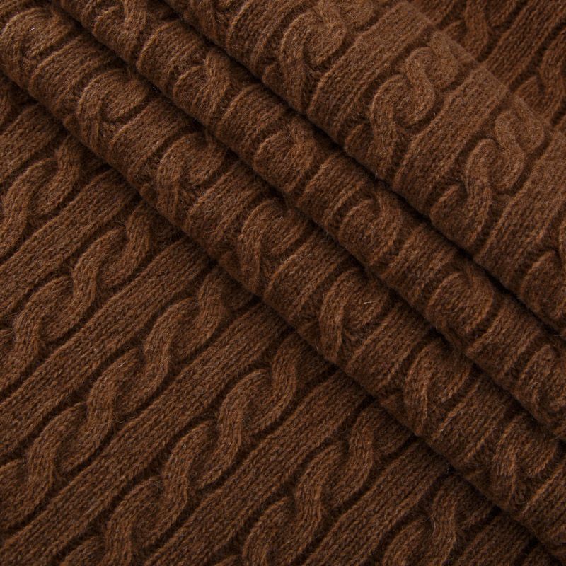 Итальянский вязаный шерстяной трикотаж с косами в кофейном оттенке. Трикотаж мягкий, матовый, пластичный. Отлично подойдет для пошива платья, кардигана, свитера.