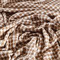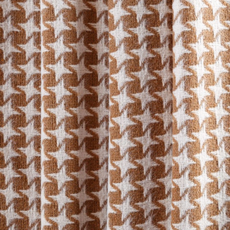 Костюмный твид с карамельного оттенка с геометрическим узором молочного цвета. Ткань плотная, мягкая, приятная на ощупь, прочная, не вытирается. Отличный выбор для осенних костюмов, облегченного пальто, куртки, бомбера, юбки, шорт или теплого платья.