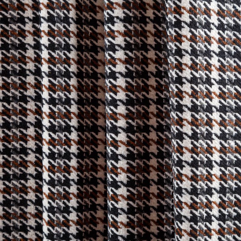 Твид молочного оттенка с плетеной матовой поверхностью, мелкий узор "гусиная лапка" образуется переплетением серых, коричневых и черных нитей. Ткань не сухая, мягкая, но плотная, не просвечивает, теплая, хоршо драпируется. Отлично подойдет для пошива легкой верхней одежды, жакетов, костюмов, юбок.