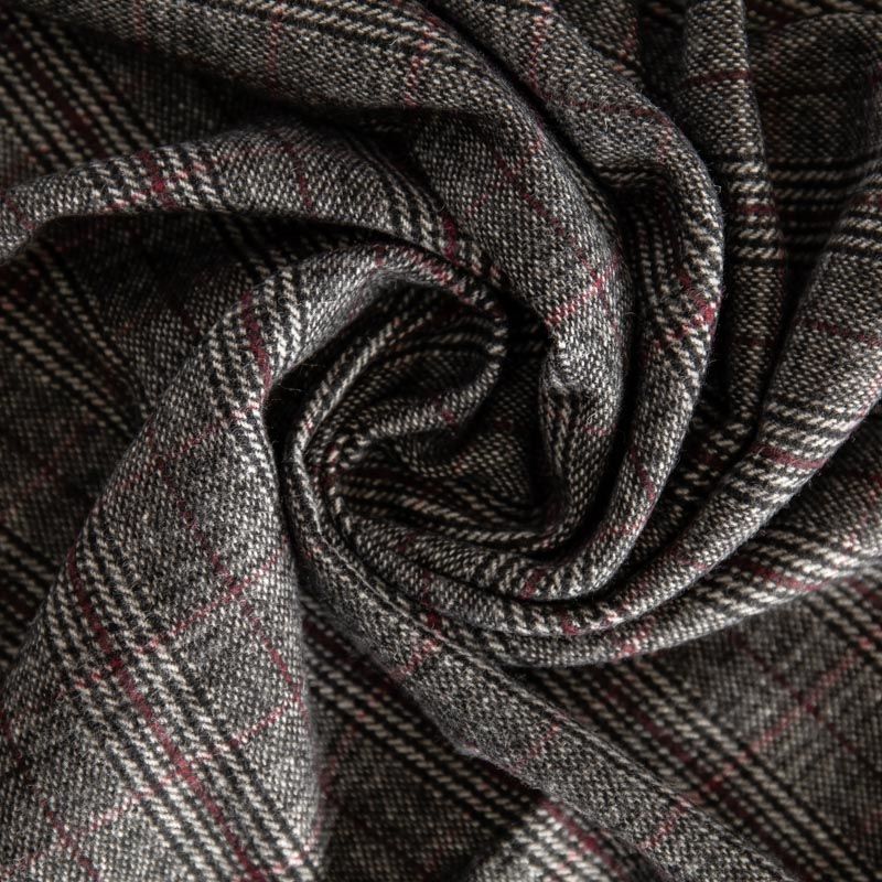 Фактурная и плотная твидовая ткань с добавлением натуральной шерсть в красивую и сложную клетку тартан. Материал саржевого переплетения, слегка шероховатый на ощупь. Хорошо драпируется и образует формоустойчивые складки. Ткань отлично подходит для пошива костюмов, пальто, пиджаков, брюк и курток, юбок, жилетов, головных уборов в классическом стиле.
