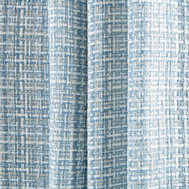 Отличительная особенность этой ткани в полотняном плетении нитей, характерного для рогожки, олицетворяющая сложную "клетчатую" геометрию в бело-голубых оттенках. Различная толщина нитей создает эффектную фактуру. Ткань достаточно формоустойчивая, при этом пластичная, гибкая за счет плетения, матовая, мягкая, приятная на ощупь, не рыхлая. Прекрасно подойдет для пошива жакета, юбки в виде трапеции, легкого пальто, костюма.
