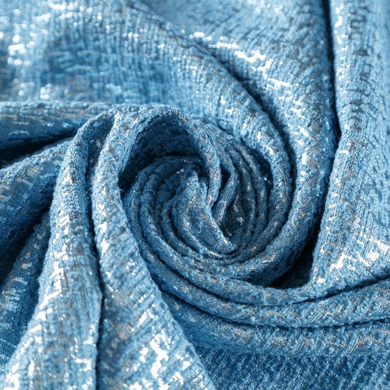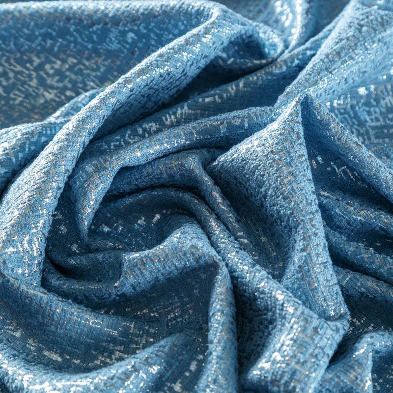 Нарядный итальянский твид с серебристой люрексовой нитью в красивом голубом оттенке. Мягкая, пластичная и объемная ткань, с рельефной структурой. Твид идеально подходит для пошива платьев, юбок, жакетов, легких пальто, эффектных бомберов и курток.