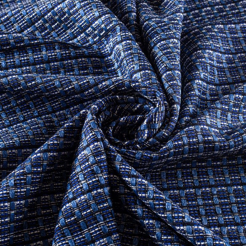 Мягкая ткань с рельефной вывязанной структурой. Буклированный твид в стиле Шанель буквально соткан из толстых цветных нитей, образующих рисунок в виде клетки. Различная толщина нитей создает эффектную фактуру. Ткань достаточно формоустойчивая, при этом пластичная, гибкая за счет плетения,  матовая, мягкая, приятная на ощупь, не рыхлая. Прекрасно подойдет для пошива жакета, юбки в виде трапеции, легкого пальто, костюма.