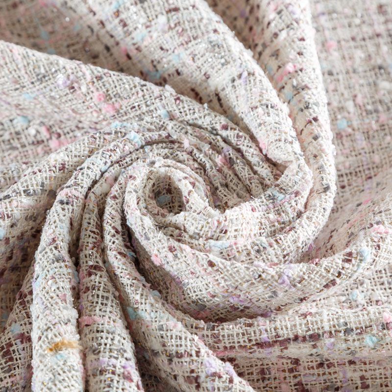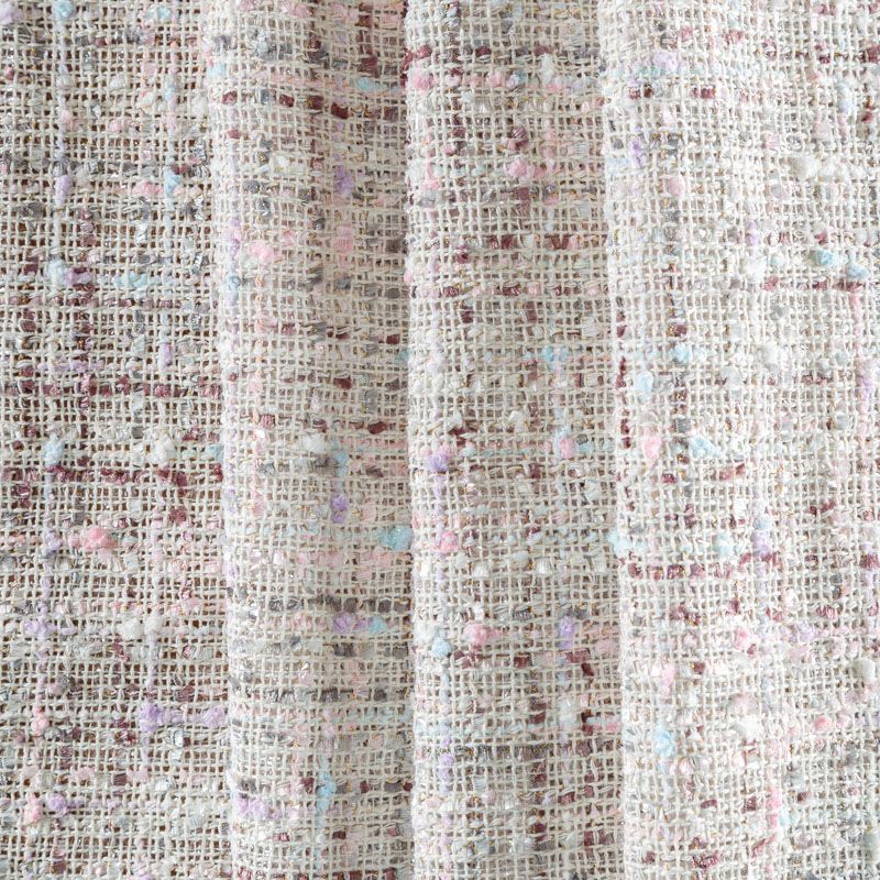 Переплетение разноцветных нитей делает эту ткань универсальной, и в тоже время оригинальной. Полотно плотное, но очень мягкое. Теплое, комфортное. Плетение рыхлое, поверхность фактурная, поэтому изделия выглядят достаточно объемно. Подойдет для пошива костюмов с юбкой, жакетов, облегченных пальто.