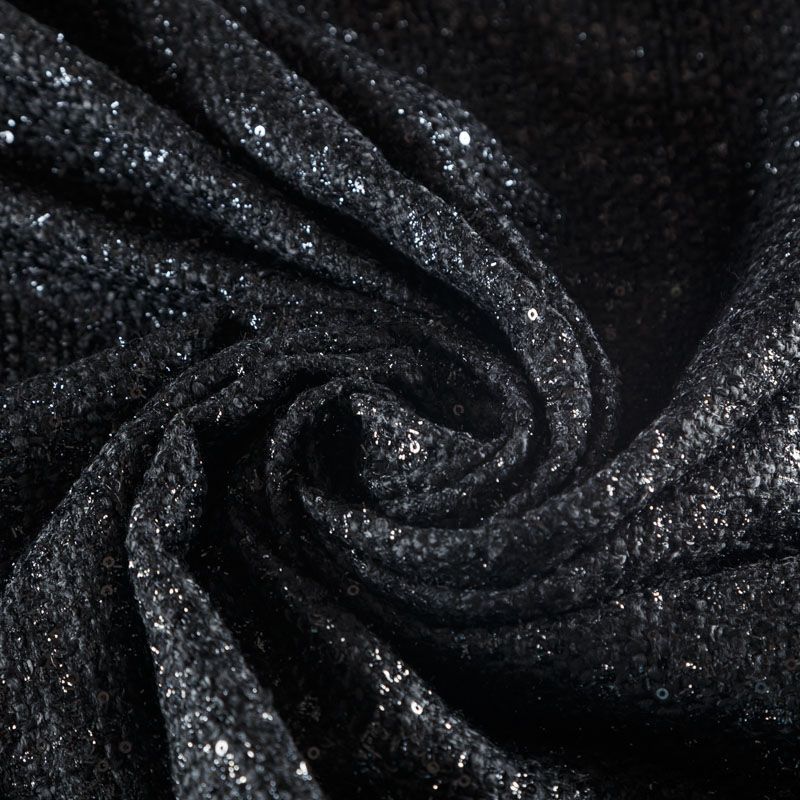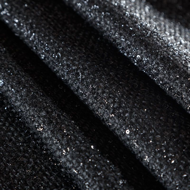 Мягкая, пластичная и объемная ткань, с разреженной и рельефной вывязанной структурой. Буклированный твид в стиле Шанель буквально соткан из различных по толщине и текстуре нитей, образующих рисунок в виде клетки. В плетение добавлена блестящая люрексная нить, а также мелкие пайетки. Твид идеально подходит для пошива платьев, юбок, жакетов, легких пальто, эффектных бомберов и курток.