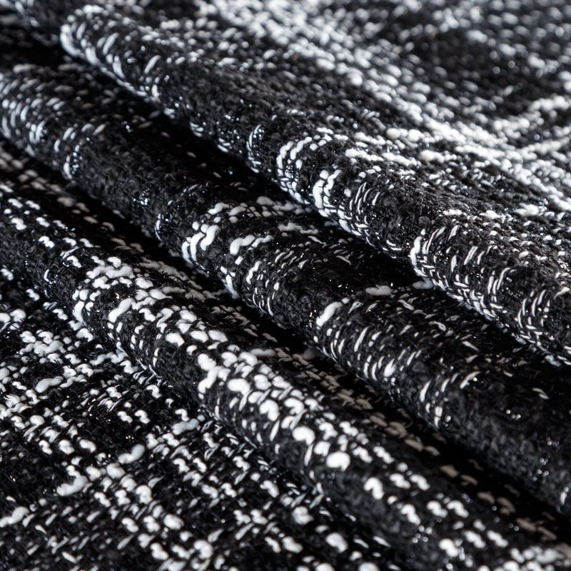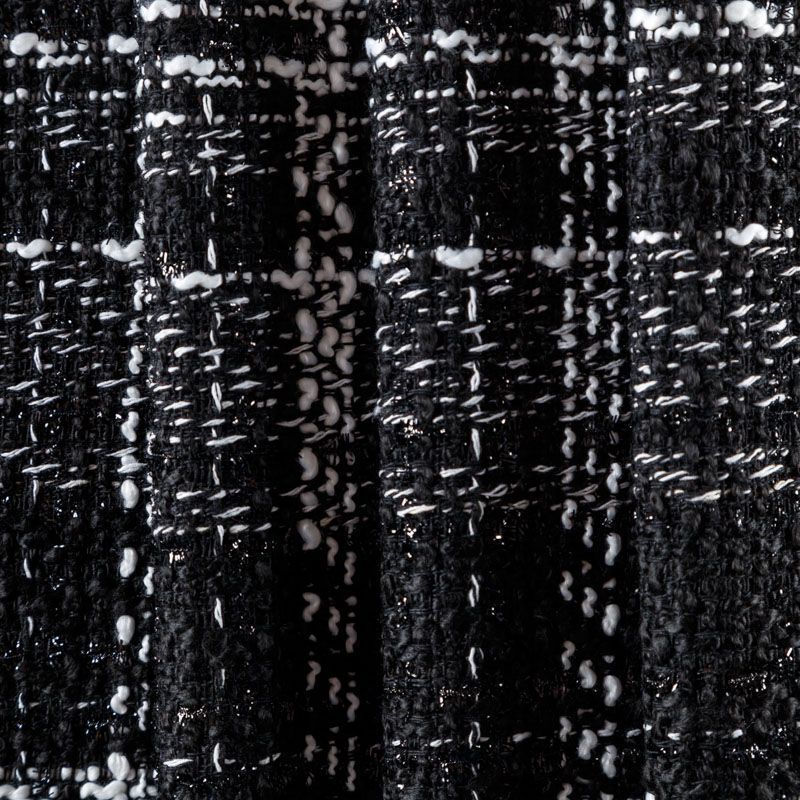 Мягкая, пластичная и объемная ткань, с разреженной и рельефной вывязанной структурой. Буклированный твид в стиле Шанель буквально соткан из различных по толщине и текстуре нитей, образующих рисунок в виде клетки. В плетение добавлена блестящая люрексная нить. Твид идеально подходит для пошива платьев, юбок, жакетов, легких пальто, эффектных бомберов и курток.