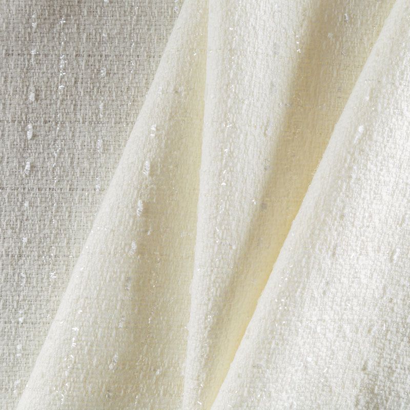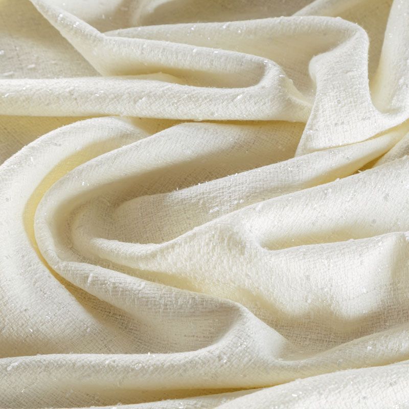 Твид средней плотности с рельефной поверхностью молочного оттенка с добавлением акцента в виде люрексовой нити, которая имитирует клетку и добавляет ткани нарядности. Твид пластичный, хорошо драпируется, умеренно держит форму, прекрасно подойдет для пошива жакетов на подкладе, жилетов, кардиганов, легких пальто, юбок и платьев.